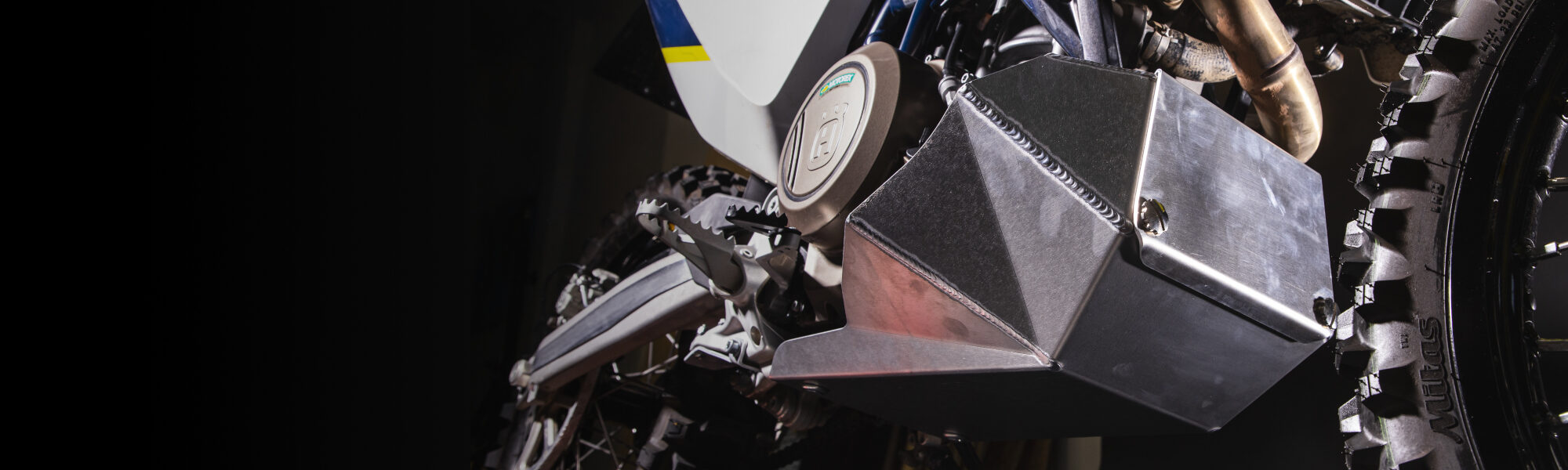 The redesigned 3mm aluminum skidplate protects not only the front and bottom parts of the engine, but also the water pump and both the brake lever and shift lever! The perfect handcrafted welding adds very high stiffness to the KTM 690, GASGAS 700 and Husqvarna 701 skidplates. The new generation of the skidplate weighs only 2,6 kg. The updated version brings a waterproof feature and an easier opening system. Four split pins were substituted for two bolts, which can be easily opened by fingers.
